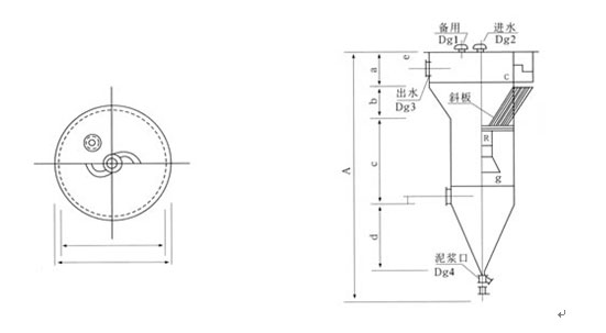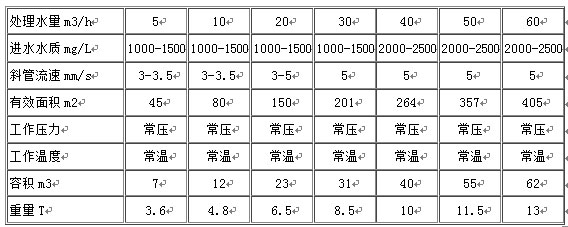 該斜板沉淀器沉淀污水固體、懸浮物、污水經加混凝反應后由設備上端進水口進入設備,經錐形反應池混凝形成礬花,逐漸沉降至設備污泥斗中(設備可連續、間斷排泥)形成排泥,在反應池中污泥沉降,清水上升至斜板(管)中,并進一步沉降污水中的顆粒,清水上升至溢流槽后出水。
